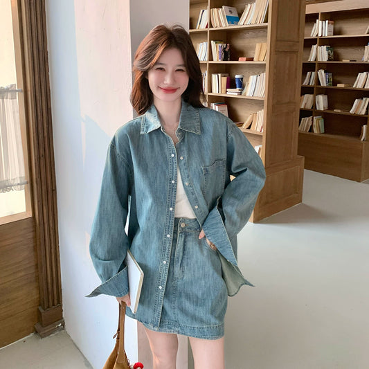 牛仔外套+短裙套裝|休閒顯瘦兩件套女|時尚百搭氣質穿搭【JZ系列】