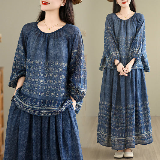 民族風上衣+高腰半身裙套裝|顯瘦氣質兩件套女|度假休閒氛圍穿搭【JZ系列】