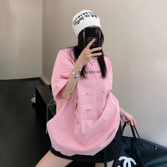 【上衣】夏季高端日曆印花寬鬆復古休閒100%純棉T卹【FC系列】