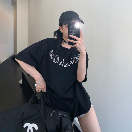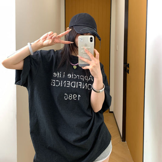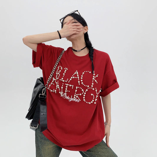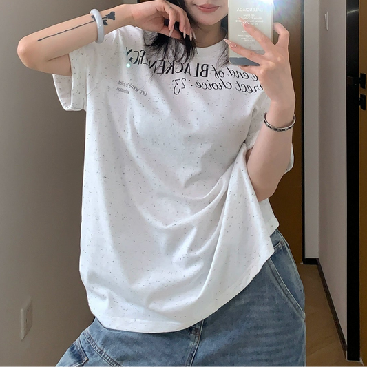 [上衣] [10-15天內出貨] 夏日奢華珍珠燙金厚重100%純棉短袖T卹[FC系列]