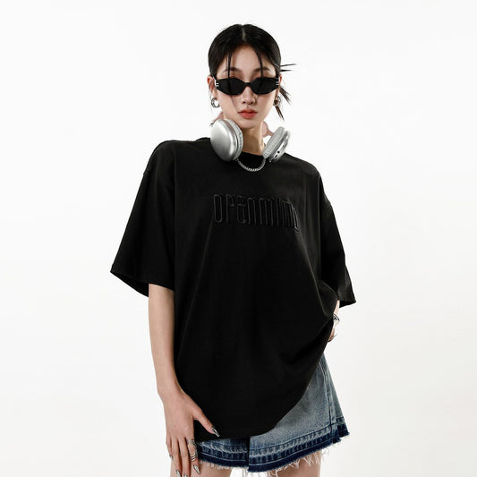【上衣】夏季美式寬鬆復古珍珠短袖情侶T卹【FC系列】