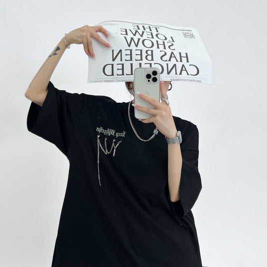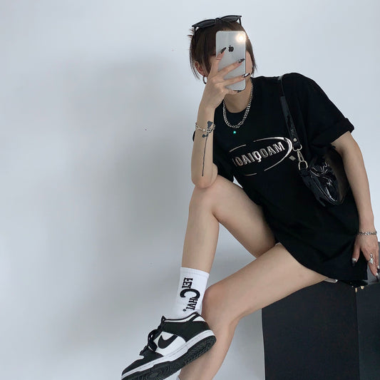 [上衣] 夏日時尚美式情侶銀色印花短袖T卹 [FC系列]
