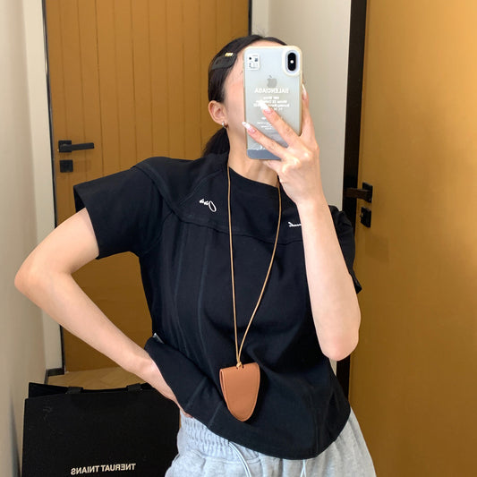【トップス】夏新作 個性派デザイン ストラクチャード刺繍 ショートフィット Tシャツ【FCシリーズ】