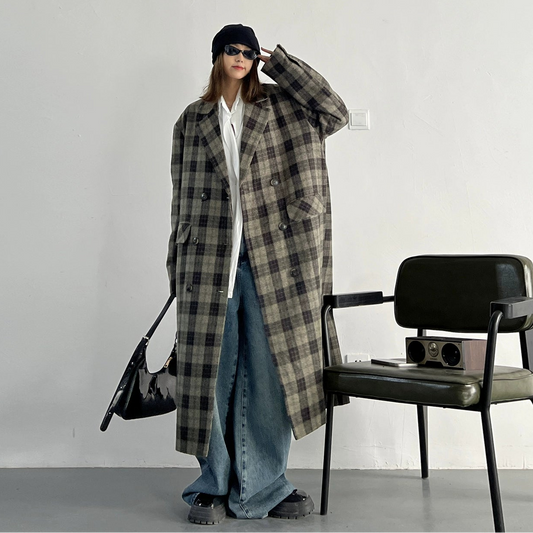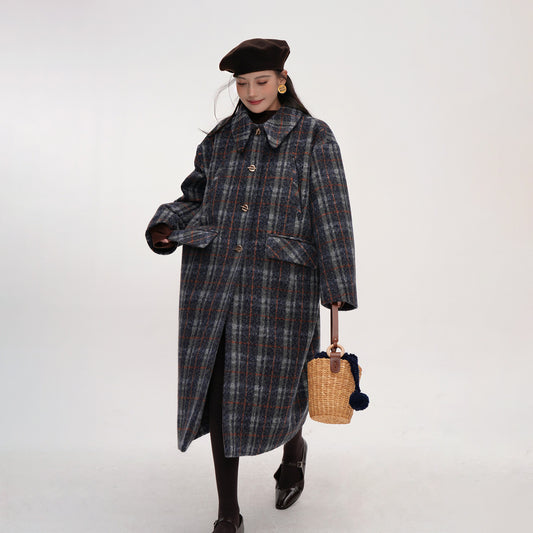 【アウター】チェック柄 ウール調レディース 秋冬 ゆったり シルエット ミドル丈 レトロ コート 【JZシリーズ】【25~30日内発送】