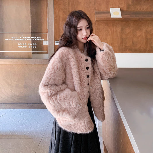【アウター】ふわモコ 🎄 韓国風デザイン 冬新作コート アンゴラ調ボアジャケット【JZシリーズ】