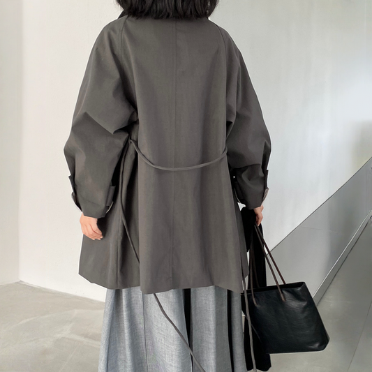 【アウター】春 秋 冬 レトロ カジュアル ダブルフロント 前立て 小柄向け トレンチコート 【SNシリーズ】