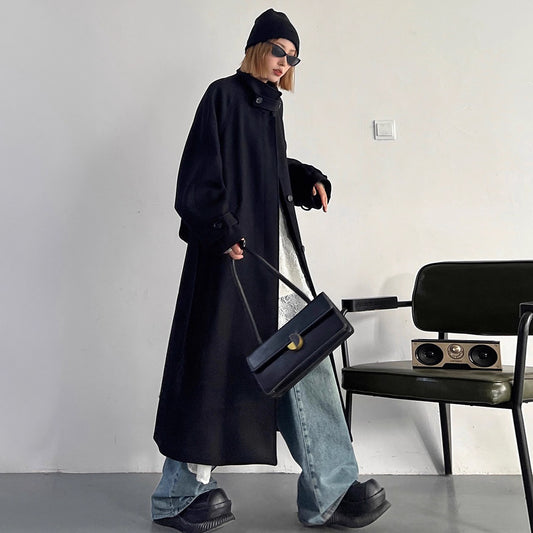 【アウター】秋冬 新作 レディース ウールコート 中長丈 スタンドカラー ラグランスリーブ ベルト付き 高級感【FCシリーズ】