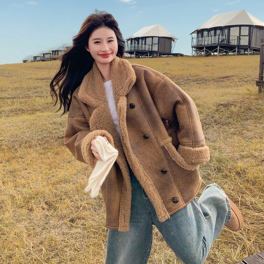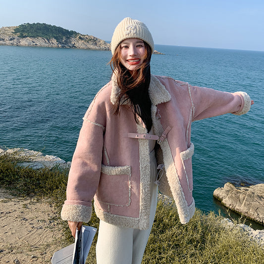 【アウター】冬新作 レディース ピンク スエード ボアコート フェイクムートン 厚手 あったか おしゃれ【JZシリーズ】