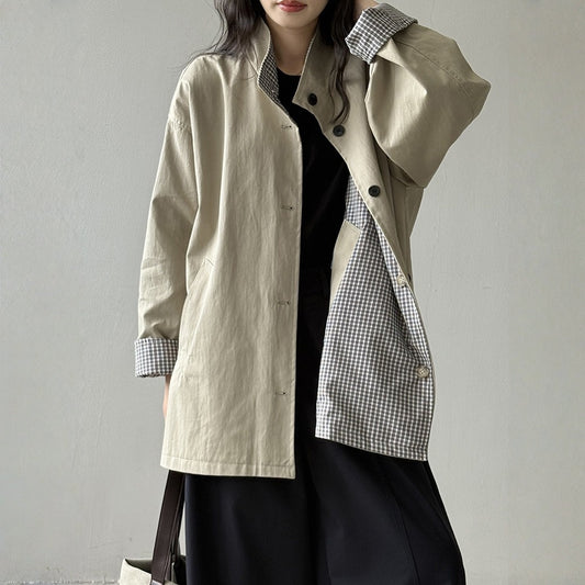 【アウター】春 秋 両面 ブリティッシュ風 切り替え コート 【JZシリーズ】