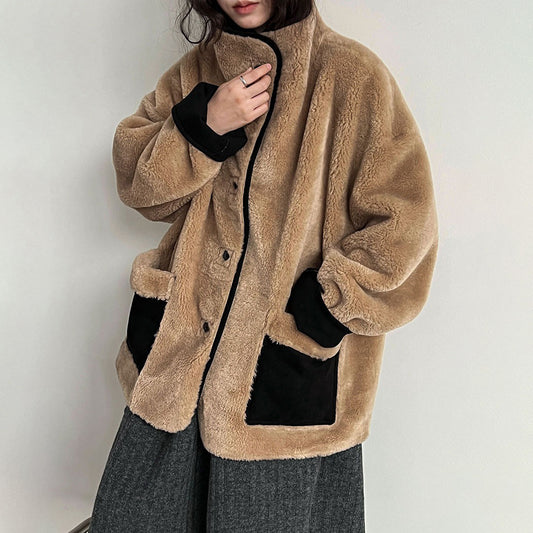 【アウター】レトロ感×バイカラー♡ボアジャケット 冬新作 レディース あったか【JZシリーズ】