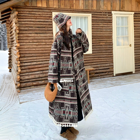 【アウター】エスニック プリント 合わせやすい 春 秋 冬 マフラー 帽子 綿入り コート 3点セット【SHシリーズ】