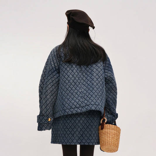 【アウター】ヴィンテージ風 ボア×ブルーデニムジャケット 2025冬 厚手 保温 中綿コート レディース おしゃれ【JZシリーズ】