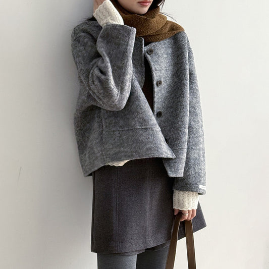 【アウター】上質ウールコート✨レディース 冬 短丈 シンプル 丸首 ゆったりシルエット 大人可愛い【JZシリーズ】