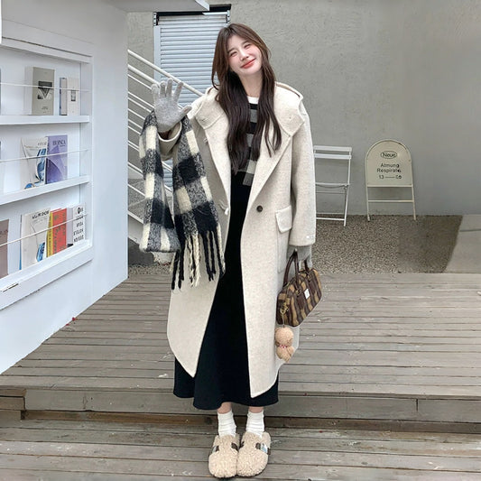 【アウター】韓国風 ダブルフェイスウールコート レディース フード付き 秋冬新作【JZシリーズ】