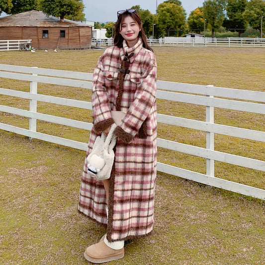 【アウター】春 秋 冬 韓国系 スイート ルーズ チェック 厚手 コート【JZシリーズ】