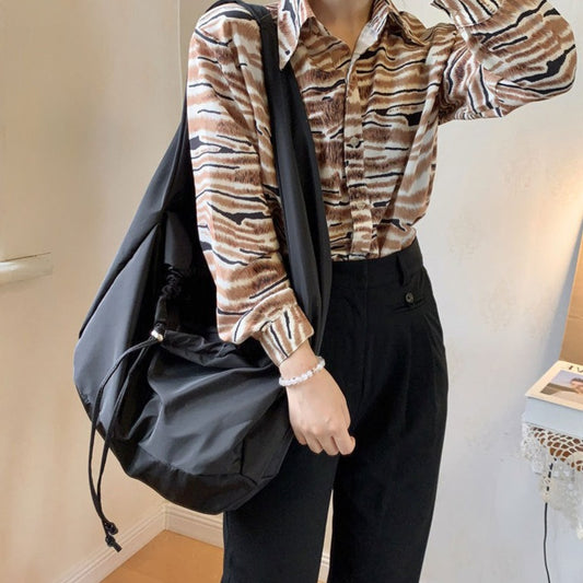 [包包] 條紋圖案,大容量單肩包,手提包