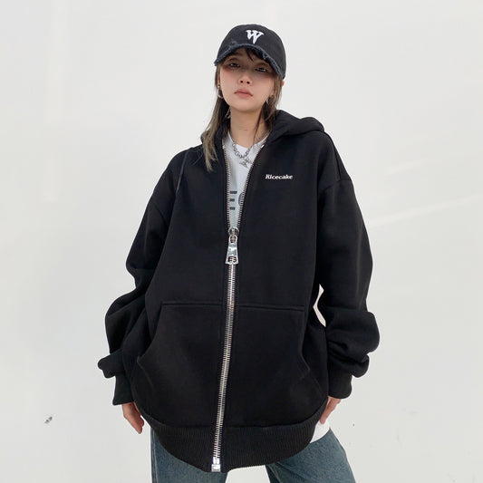 【アウター】春コーデ 美式デザイン カップル向け ヘビーウェイトジャケット ゆったり オーバーサイズ ジップアップ 刺繍 裏起毛 フード付きアウター レディース【FCシリーズ】