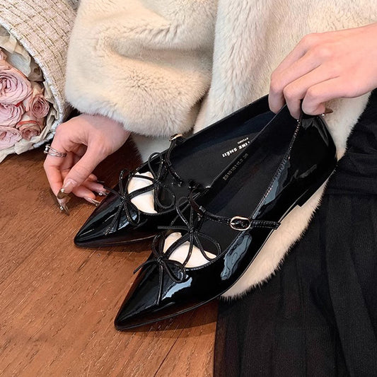 【シューズ】フレンチフラットシューズ バレエ風ローファー パンプス
