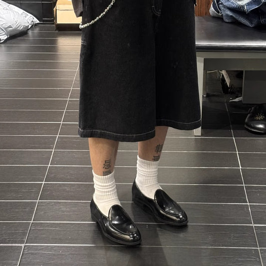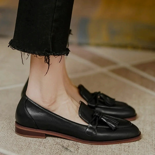 【シューズ】デザイン感フラットパンプス 黒 気質新中式 ローファー風