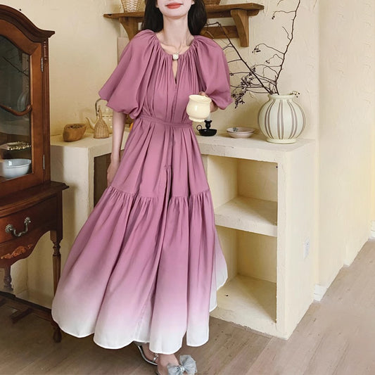 【洋裝】韓版春夏寬鬆燈籠袖漸變短袖洋裝【JZ系列】