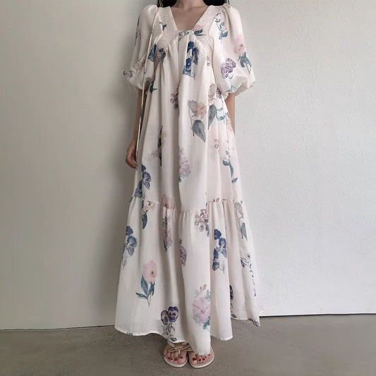 [洋裝] 夏日度假風法式復古優雅寬鬆碎花短袖洋裝【SH系列】