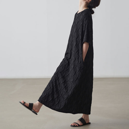 [洋裝] 夏季寬鬆褶皺短袖洋裝