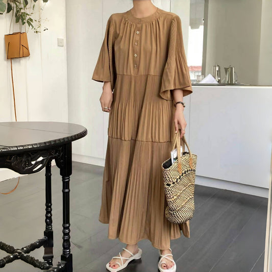 [洋裝] 夏季寬鬆百褶短袖連身裙