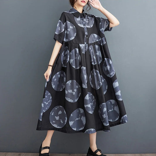 [洋裝] 夏季 大尺寸 寬鬆 印花 透氣 短袖 洋裝【SH系列】