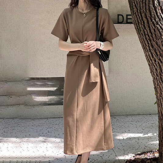 [洋裝] 夏季海外潮流好看顯瘦綁帶裝飾短袖洋裝【JZ系列】