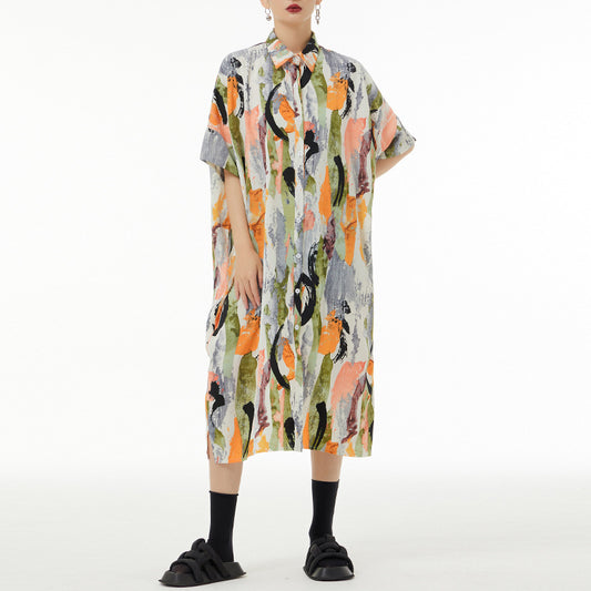 [洋裝] 夏季印花寬鬆短袖洋裝【SH系列】