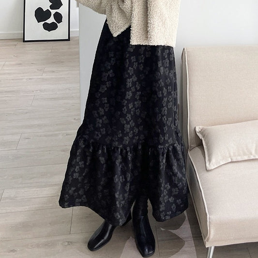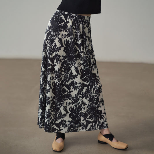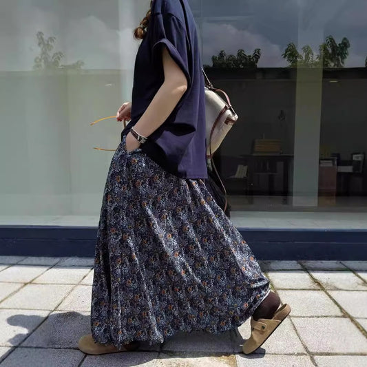 [下裝] 春秋冬復古荷葉邊抓絨印花半身裙 [SH系列]