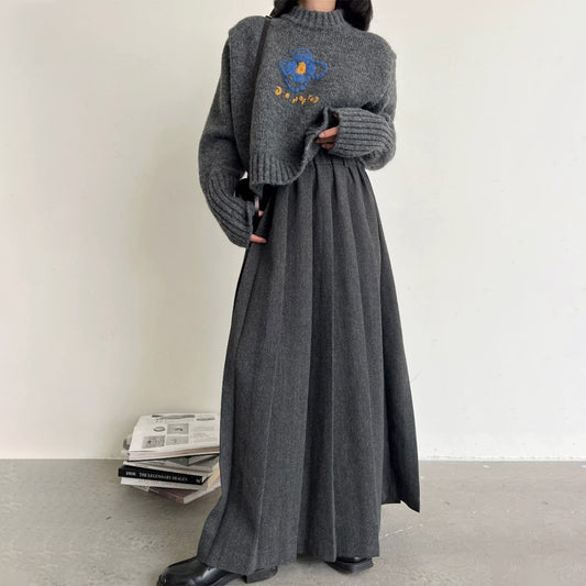 [下裝] 基本款日常簡約寬鬆秋冬加墊A字裙 [SN系列]