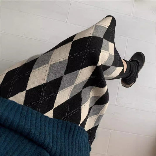 [下裝] 好搭配高腰春秋冬針織格紋裙
