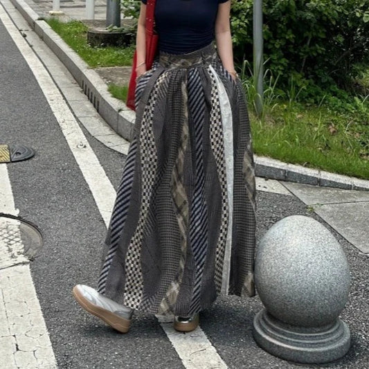 【下裝】復古寬鬆修身大尺碼格紋大下擺秋冬裙【SH系列】