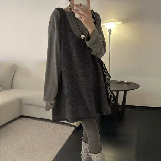 【ワンピース】レトロ 重ね着 春 秋 冬 大振裾 タンクトップ ワンピース 【SHシリーズ】