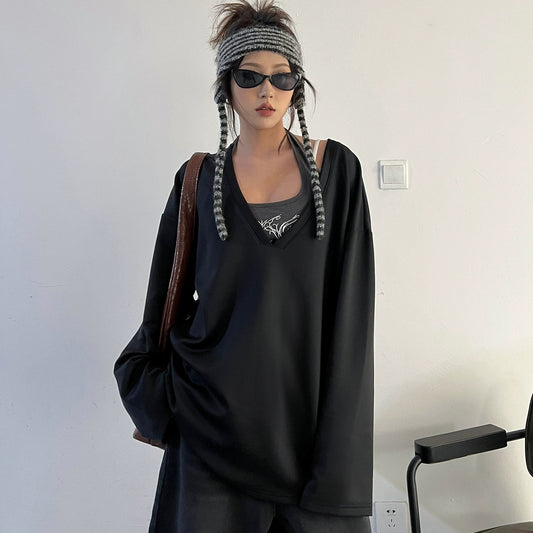 [上衣] 春秋冬V領仿層疊針織T卹[SN系列]