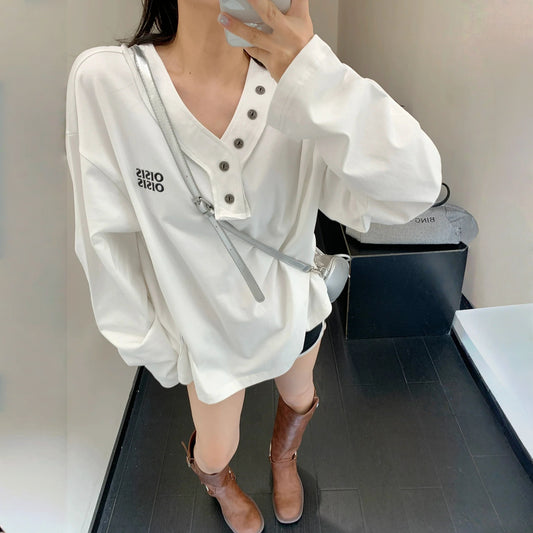 【トップス】春 秋 冬 Vネック ニッチデザイン 長袖Tシャツ 【FCシリーズ】
