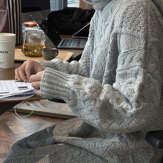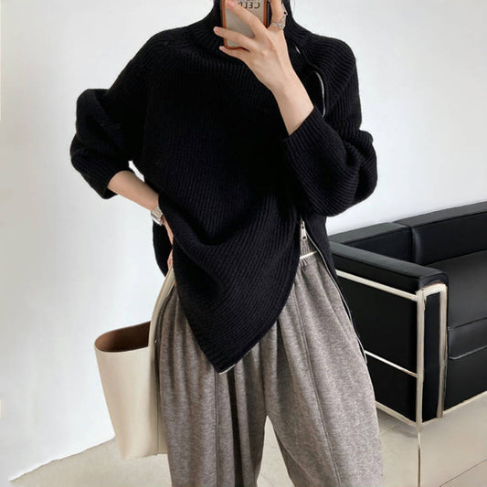 [上衣] 秋冬拉鍊設計時尚大尺碼寬鬆翻領針織毛衣開襟衫-[SN系列]
