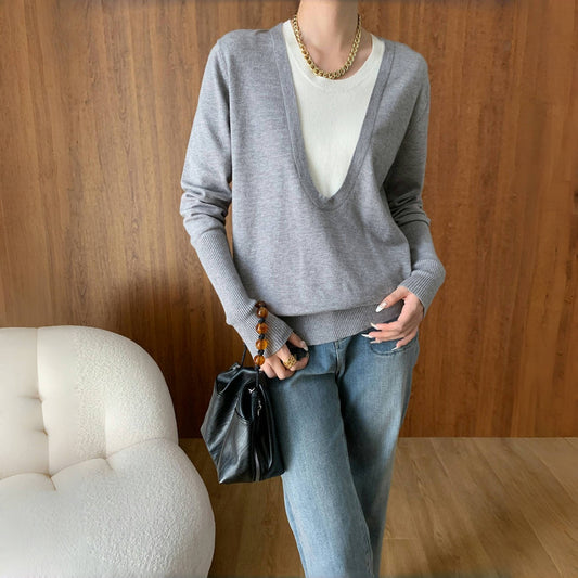 [上衣] 春秋冬V領仿層疊針織T卹[SN系列]