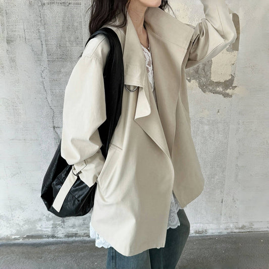 【アウター】春 秋 冬 レトロ カジュアル ダブルフロント 前立て 小柄向け トレンチコート 【SNシリーズ】