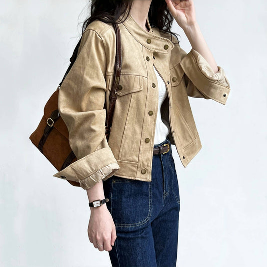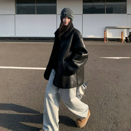 [10-20 天內出貨] [外套] S 羊羔絨 PU 冬季復古處理夾克 [SN 系列]