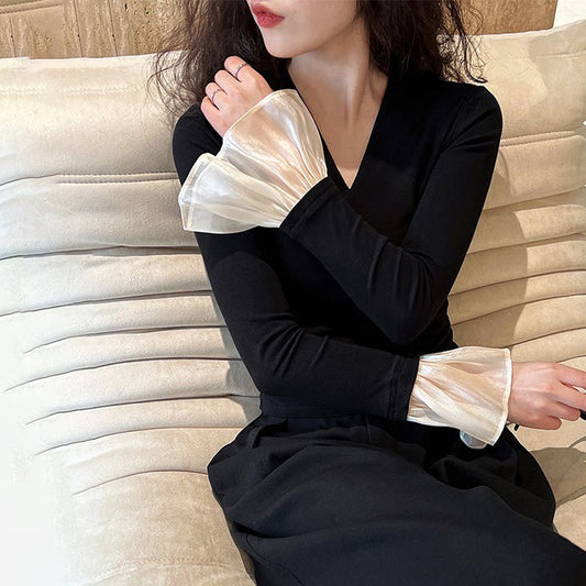 [上衣] 春秋冬V領喇叭袖修身針織衫【SN系列】