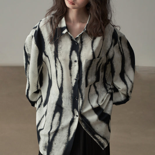 【上衣】春夏秋文藝墨水印花寬鬆襯衫【SN系列】