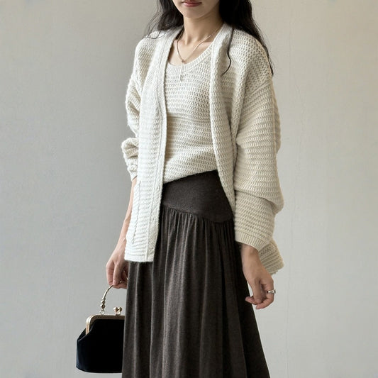 【セットアップ】春 秋 冬 Vネック ニット カーディガン + タンクトップ 2点上下セット 【SNシリーズ】