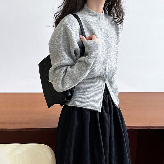 【セットアップ】春 秋 冬 ラウンドネック セーター + 着痩せ効果 スカート 2点上下セット 【SNシリーズ】