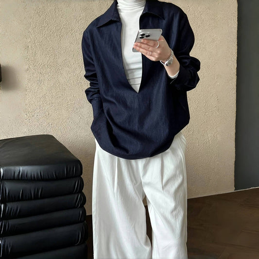 [上衣] 春秋V領翻領別緻襯衫[SN系列]