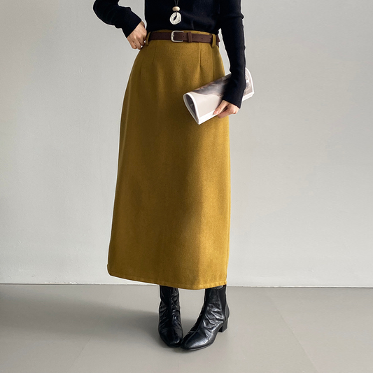 ベルト付き!【ボトムス】通勤向けレトロ 韓国風 ハイウエストスカート レディース すっきりAライン ミドル丈【SNシリーズ】