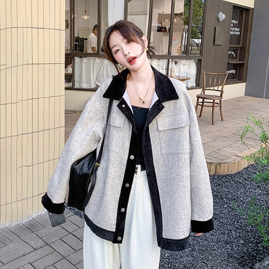 【アウター】レトロ 配色 切り替え カジュアル シャツジャケット レディース 春秋 ゆったり 【JZシリーズ】【SNシリーズ】