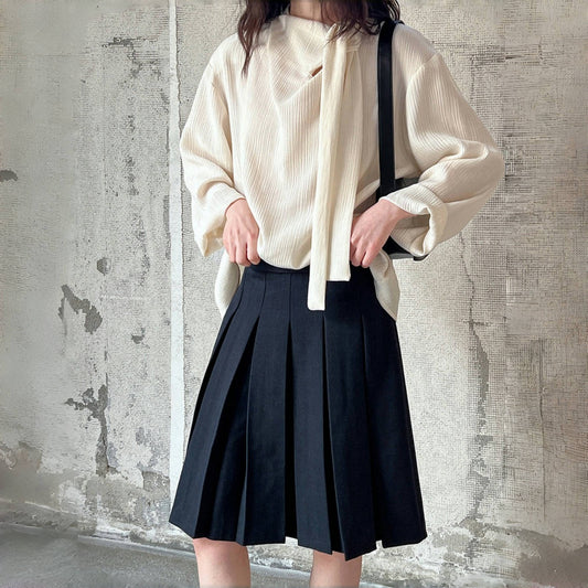【セットアップ】春 秋 冬 クルーネック セーター + ハイウエスト 細見え プリーツスカート 2点セット 【JZシリーズ】