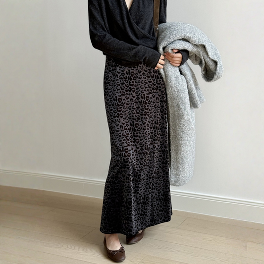 【ボトムス】春 秋 冬 レオパード ベロアハイウエスト スカート 【SNシリーズ】